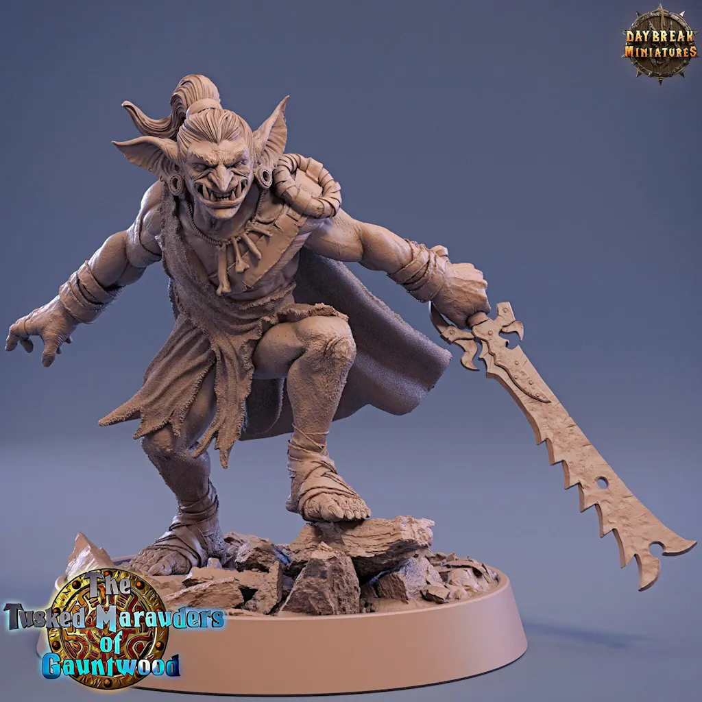 Goblin Sword Fighter | DnD Miniatures | D and D | 28mm, 32mm,54mm,75mm, 100mm scale| Pathfinder | Figure for Painting| Daybreak Miniatures