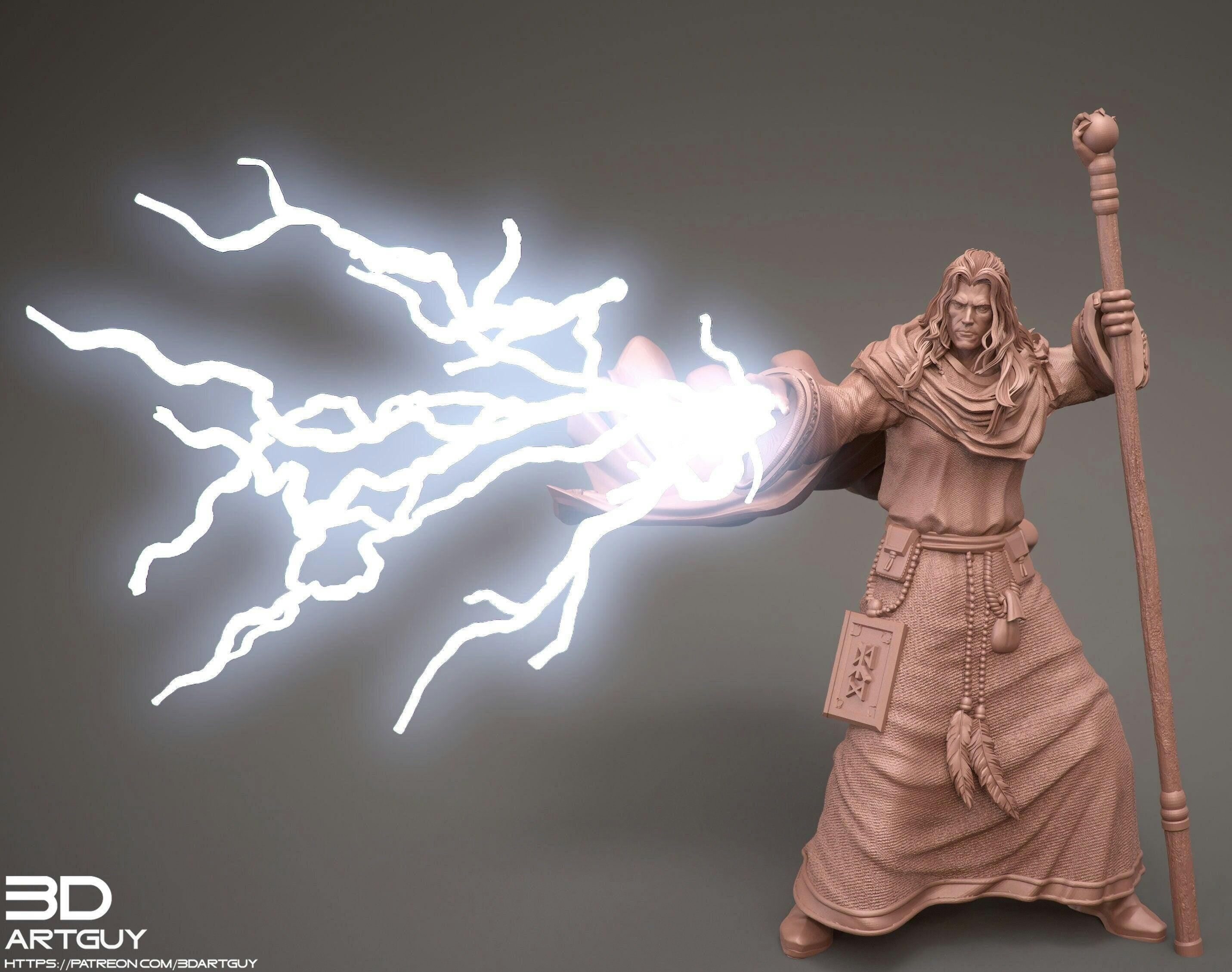 Human Male Wizard Lightning Bolt Spell | Resin Figure| 28mm, 32mm,75mm Scales, 100mm Tall| Dungeons and Dragons | Pathfinder | Battle Wizard