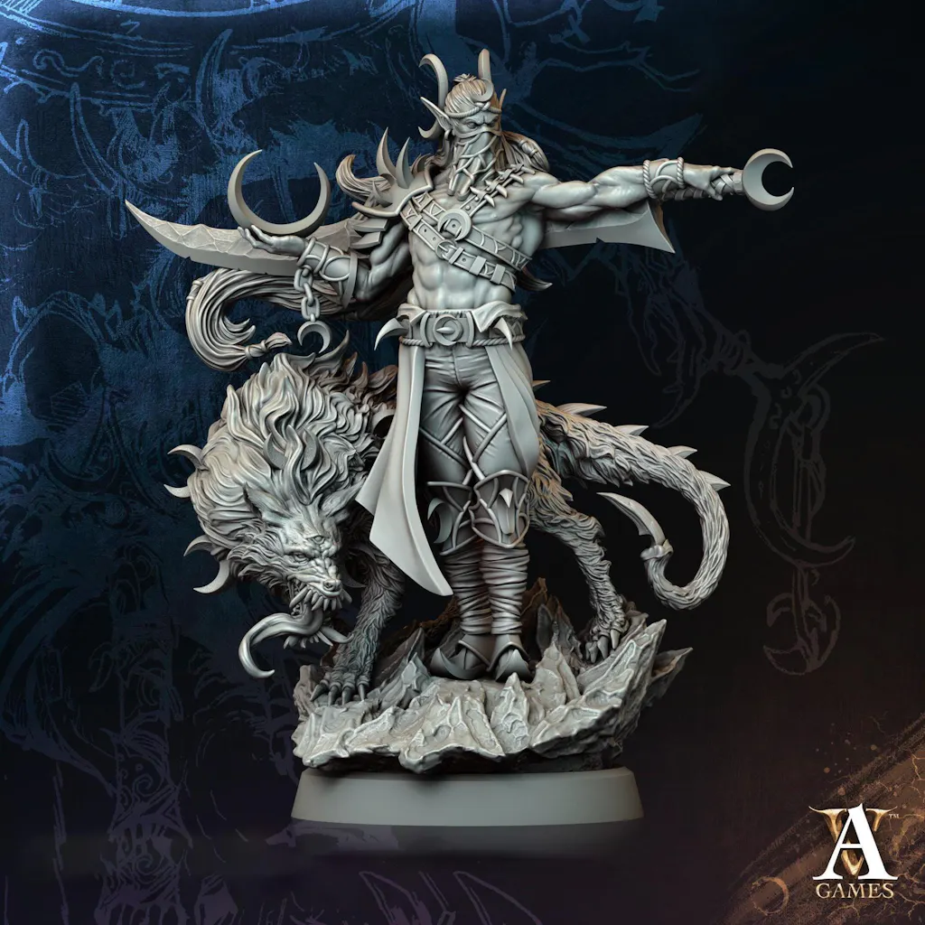 Male Elf Hexblade Warlock, Ranger, Druid, Sorcerer PC NPC Miniature | 28mm,32mm, 54mm, 75mm, 100mm Scales | Dungeons & Dragons | Pathfinder