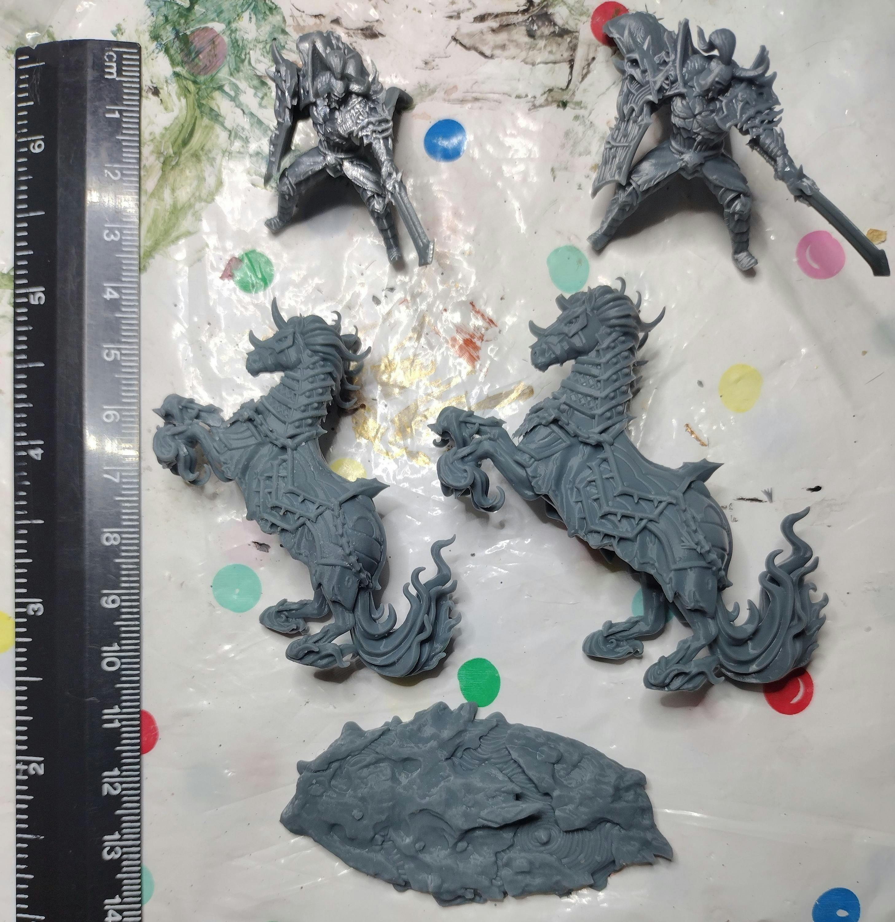 You are purchasing a single unpainted resin miniature of a Oath of Conquest Paladin on Nightmare, Chaos Hell Knight.