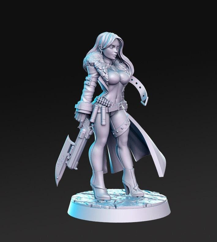 Pinup Female Gunslinger Trish | 28mm| 32mm|54mm | 75mm|100mm Scale | Final Fantasy classic JRPG - Minis - D&D -