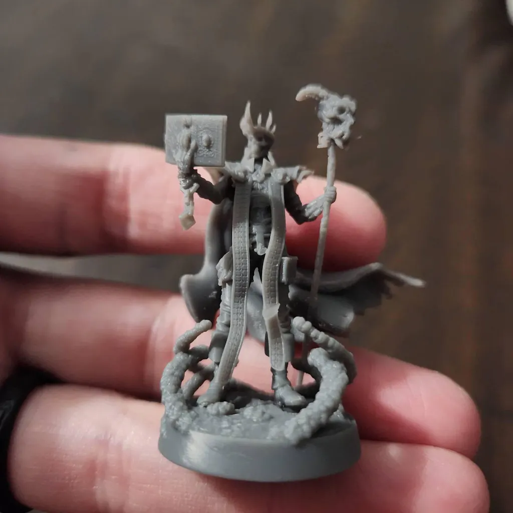 This 3d printed miniature is cleaned of supports, and then cured. Your figure will be printed along with a base. Minor assembly and cleaning required .
